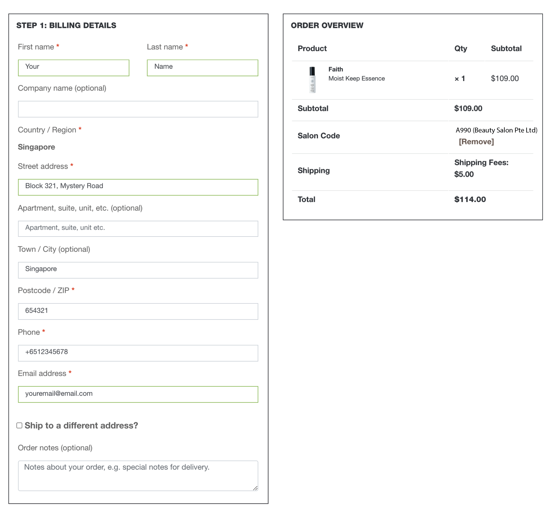 - Kindly remember to tick “Ship to a different address” if you would like to ship to an address that is different from your billing address.