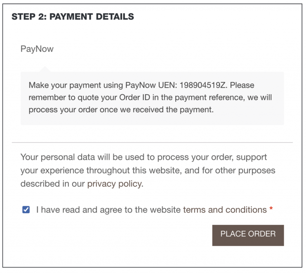 - You may now complete your purchase using Paynow payment mode. Remember to quote your “Order ID” in the payment reference. Your order will be processed once we have verified the payment. (Note: Your “Order ID” will be generated after you have placed the order.)