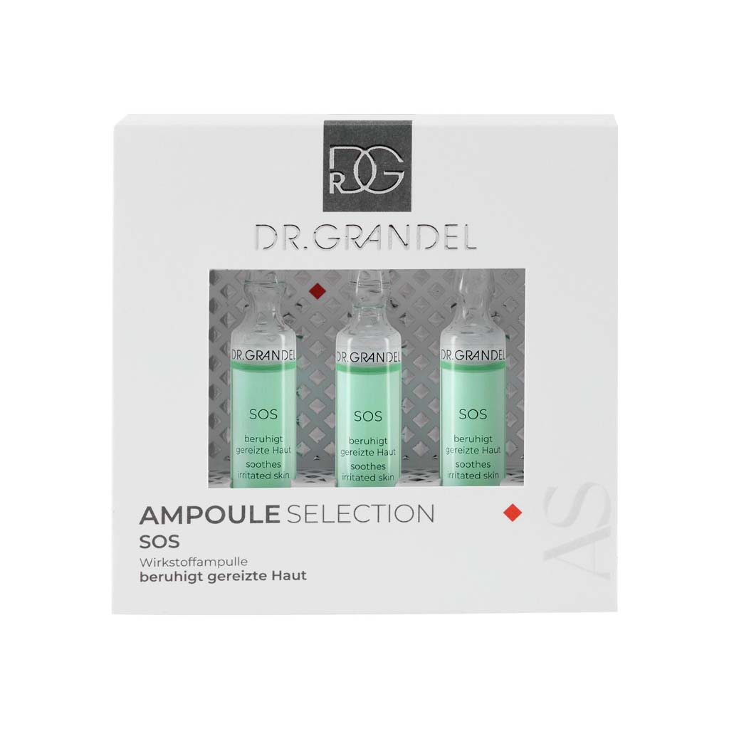 For a skin susceptible for redness or irritations the DR. GRANDEL SOS Ampoule is an effective treatment. The concentrate has an antiinflammatory effect and alleviates redness. Damaged skin gets regenerated.